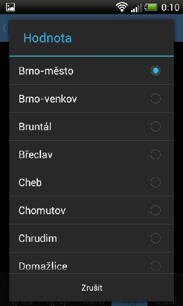 Posledním nastavením je přesná hodnota tagu CZ okres. Proto Gelda nastaví do nabídky Hodnota hledaný okres – Brno-město.