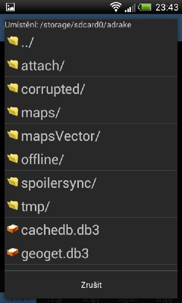 Výběr je intuitivní, pomocí prohledávání složek telefonu. Gelda má ve svém programu a:Drake hned několik databází, jak můžete vidět na screenu níže.