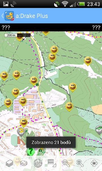 Po nastavení databáze se Gelda vrátí do hlavního menu programu a zobrazí si mapu. Pokud je nastavení správné, vidí své nálezy načtené z databáze (screen podobný tomu níže).