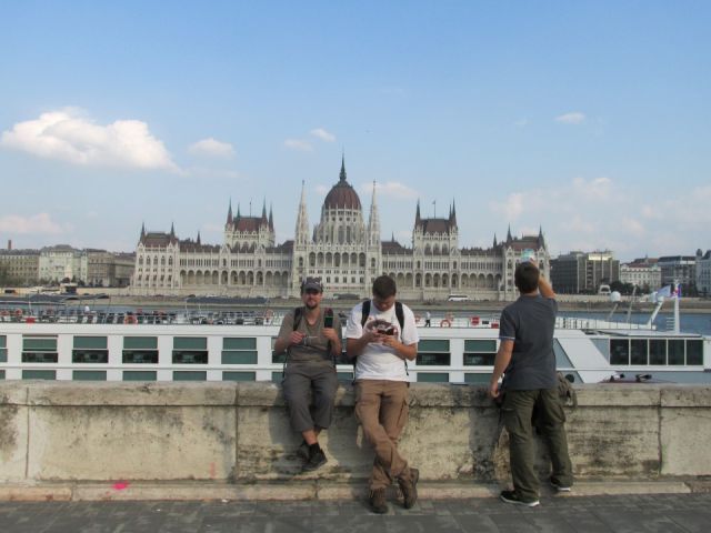 Po sedmi hodinách cesty autobusem stojíme na zastávce Népliget v jiho-východní části Budapešti nedaleko místního planetária. K němu také vedou naše první kroky, protože se u něho nachází tradička stejného jména (GC2RR10), kterou rychle nacházíme. Poté se rozhodujeme, jestli se nepustíme do nedalekého wheriga. Nakonec si jej necháváme na odlov při návratu a vydáváme se směrem do centra. Druhou plánovanou krabičku ještě také bez potíží nacházíme, třetí, čtvrtou a pátou už bohužel ne. Místa uložení jsou jasná, leč bohužel prázdná. Začínám být jasné, že to nebude zas taková jednoduchá procházka. Naštěstí další v pořadí je hnízdo tří Earthtek, které tu být musí. Ty se nalézají v parku Ludovika a bližší keše jsem snad nikdy neviděl. Jedná se opravdu o pár metrů. Jsme čtyři a tak sbírání odpovědí jde velmi rychle. Za chvilku vyrážíme dál, ale hned další keš je zase pryč. Pomalu začínáme propadat trudomyslnosti a ani píseň proti ní nepomáhá. Rozhodneme se tedy malinko poupravit trasu. Smiřujeme se faktem, že přibližně 40% krabiček nenajdeme i přes fakt, že nejsou uzavřené. Lovíme ještě pár krabiček a pak se rozhodujeme dojít na nábřeží Dunaje. Potřebujeme se totiž dostat na západní břeh a cestou chceme ulovit něco ze serie Danube Promenade.