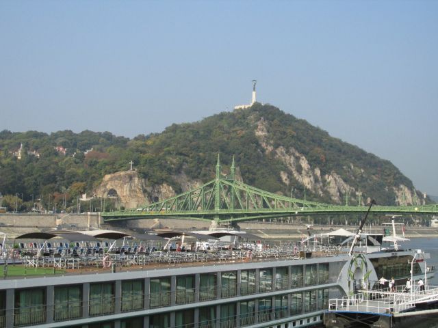 Danube Promenade je serie 32. krabiček táhnoucí se po obou stranách Dunaje. Bohužel její stav se ukázal jako tristní. Na naší cestě jsme měli přibližně 18 keší z této serie a bohužel jsme jich 50% nenašli. Stejnou zkušenost udělali kolegové z Holandska, které jsme později potkali. Průměr nálezů měli stejný jako naše skupina. Jedinou výhodou je, že cesta po západním břehu Dunaje je hezká. Přibližně v její polovině se tyčí první skalní masiv s monumentální sochou na vrcholu. Původně jsme se chtěli šplhání do kopce vyhnout, ale nakonec jsme se rozhodli na kopec vylézt a odlovit pár krabiček na jeho vrcholu. Logy totiž naznačovaly, že krabičky v této oblasti jsou na svých místech. Lovíme tedy místní virtuálku Statue, Chapel, Cross u paty kopce a vydáváme se nahoru.