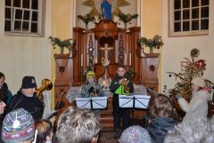 Po chvíli začal koncert – koncert dvou žesťových uskupení – žesťového kvinteta a žesťového kvarteta. Žesťový kvintet hrál převážně orchestrální vánoční skladby, kvartet hlavně vánoční koledy. Oboje byly soubory soubory z místní ZUŠky – Základní umělecké školy v Polici nad Metují. Trubky v kapli zněly opravdu úžasně. Koledy střídaly orchestrální vánoční skladby a my si užívali krásnou pohodu vánoc a povznášející náladu uvnitř kaple. Chvílemi jsme si poslechli instrumentálku, chvíli jsme si rádi společně z plna hrdla zazpívali, prostě opravdu skvělá atmosféra. Trochu mě jen mrzí, že někteří se do kaple nemohli dostat, takže si tuto krásnou atmosféru nemohli užít.