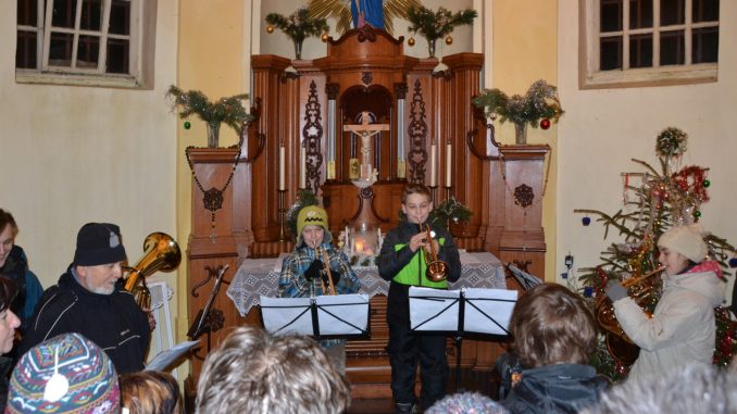 Po chvíli začal koncert – koncert dvou žesťových uskupení – žesťového kvinteta a žesťového kvarteta. Žesťový kvintet hrál převážně orchestrální vánoční skladby, kvartet hlavně vánoční koledy. Oboje byly soubory soubory z místní ZUŠky – Základní umělecké školy v Polici nad Metují. Trubky v kapli zněly opravdu úžasně. Koledy střídaly orchestrální vánoční skladby a my si užívali krásnou pohodu vánoc a povznášející náladu uvnitř kaple. Chvílemi jsme si poslechli instrumentálku, chvíli jsme si rádi společně z plna hrdla zazpívali, prostě opravdu skvělá atmosféra. Trochu mě jen mrzí, že někteří se do kaple nemohli dostat, takže si tuto krásnou atmosféru nemohli užít.