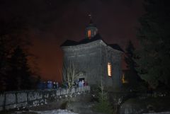 Přesně o půlnoci mělo na Hvězdě v barokní kapli Panny Marie Sněžné začít vánoční vytrubování na Hvězdě. Všichni se už chvíli tlačili před vchodem, kde každou chvílí narůstala fronta. Malá kaple dávala najevo, že se do ní asi všichni nevejdeme… Nakonec asi se čtvrthodinovým zpožděním začali procházet hudebníci. Paní co jsme znali z Vaškova loňského videa jako dirigentku prohodila něco o tom, ať ti co jsou z hospody již posilnění alkoholem raději dovnitř nechodí. Je pravda, že to na některých už bylo docela znát.