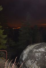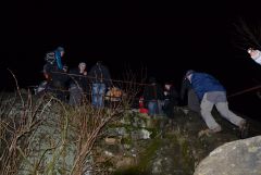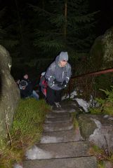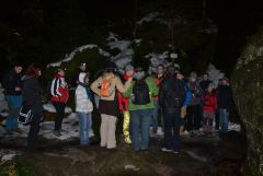 Dál jsme pokračovali na Supí koš. Aneb přesně podle definice „zkratky“ – je to po horší cestě, zato delší cestou. Na druhou stranu shora byl krásný výhled na Broumovskou kotlinu. Cestou nahoru (a vlastně i dolů) jsme se někteří málem „zrakvili“, nahoře jsme si rychle udělali pár společných foteček, a většina vyrazila rychle směr Hvězda – hospoda. Já a hlouček „statečných“ jsme zde zůstali na větru a fotili jsme zde ještě krásné výhledy na noční krajinu v okolí. Horší pak byla cesta dál, kdy jsem za svitu slaboučké baterie z klíčů skoro nic neviděl a po umrzlých hřebenech Broumovských skal jsme museli pokračovat na Hvězdu. Naštěstí Geopařman a Jirka nám trochu s Danou svítili a Dana vyprosila od někoho trochu lepší baterku, než jsme měli z domu, takže jsme nakonec pomalejším tempem dorazili kolem tři čtvrtě na 12 konečně na Hvězdu.