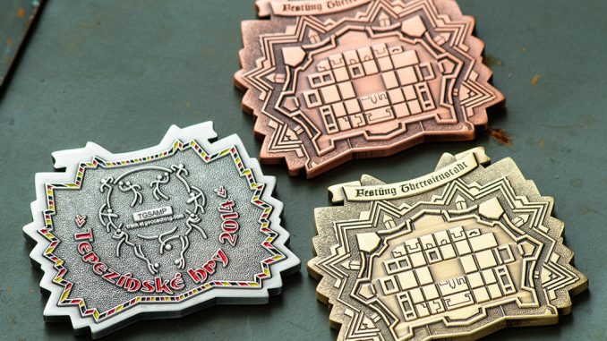 Chvíli vyhrával názor vyrobit minci v celém tvaru Terezína (malá i velká pevnost) dle mapy výše. Nakonec nás argumentace, že mince by vypadala jak brambora, přiměla skončit u tvaru velké pevnosti, který je stejně neotřelý a originální. Tvarem bylo zároveň dáno, že jedna strana mince bude replikou dobové mapy. Na druhou stranu mince jsme po úvaze umístili logo MegaEventu. Celý koncept designově zpracoval, doladil a výrobu zajistil Slávek Hoblík. Výsledek můžete posoudit sami.