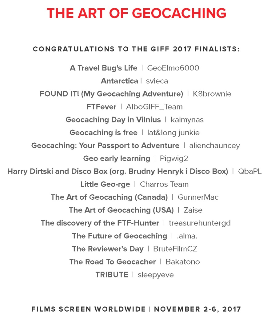 Není to super mít kousek Českého geocachingu po celém světě? Měsíc před GIFF víkendem je publikováno přes 250 eventů. Fandíme i Slovákům s jejich filmem Antarctica, kteří české FTF podporovali v roce 2013.