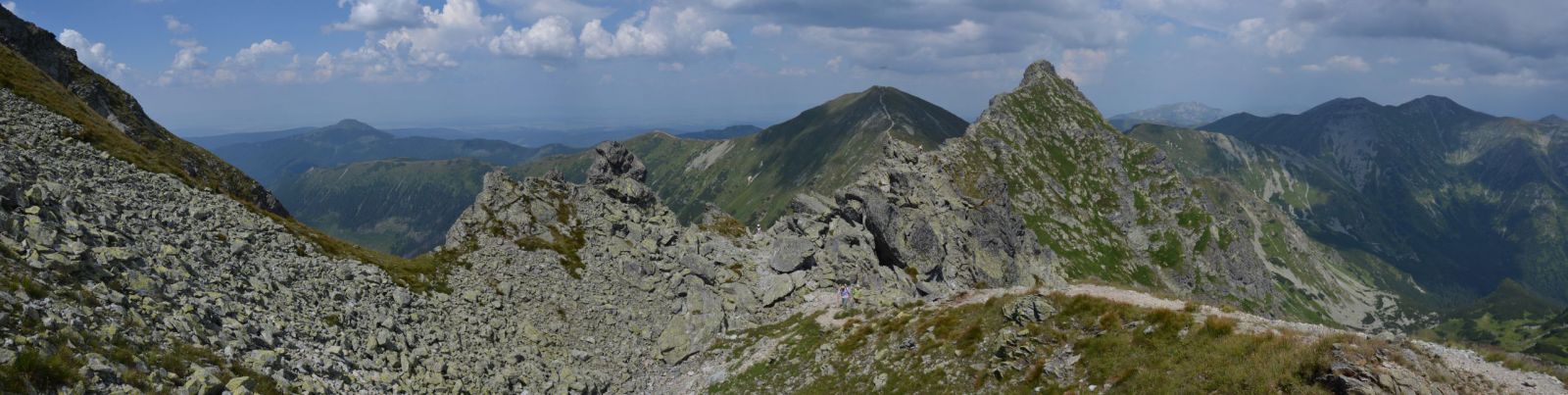 Vrcholky Roháčů nás dnes přivítali mračny a mírným větrem. Dnes už jsme šli i v mikinách, ještě totiž nebylo tak teplo a díky mrakům nás ještě nehřálo tolik slunce. Ovšem pro výstup nahoru to byla spíše výhoda. Ne jako před třemi dny, kdy jsme se i v tričkách pěkně potili i v této nadmořské výšce. Naštěstí mraky se brzy roztrhaly a i díky těmto oblakům jsme měli alespoň o zážitek navíc, protože i chůze v oblacích je zajímavá.