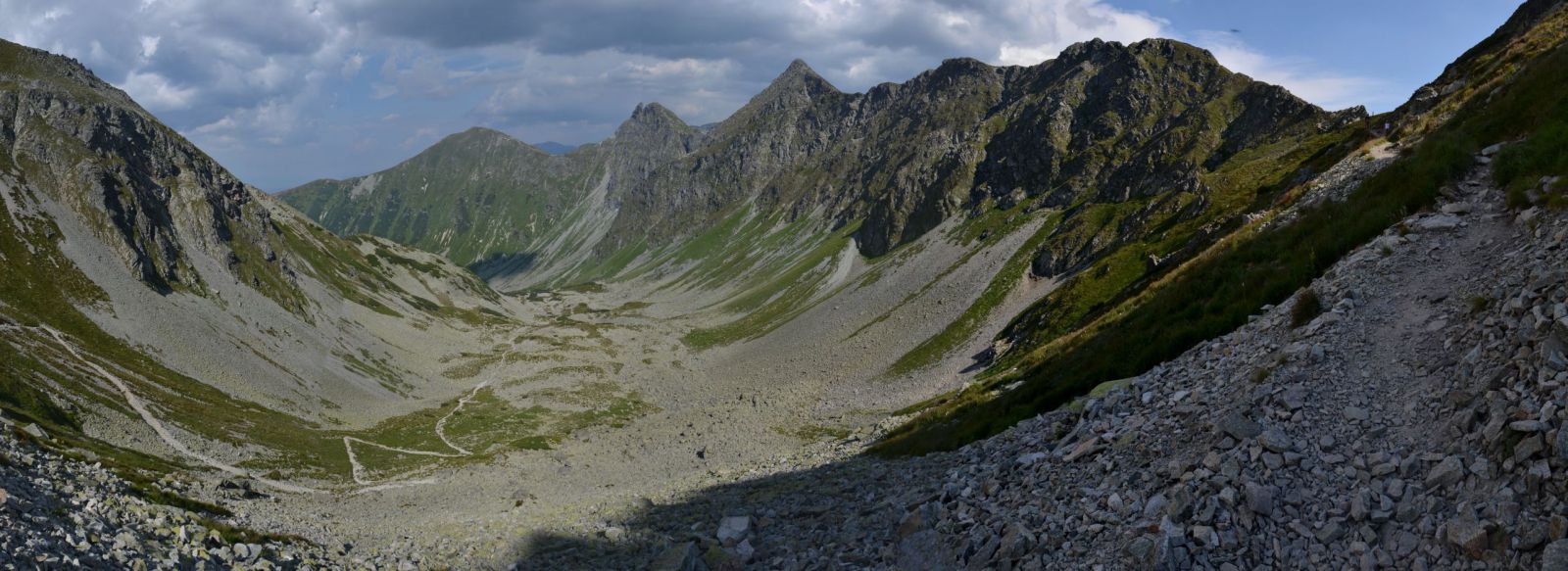 Panorama Smutné doliny – vzadu Volovec, Ostrý Roháč a Plačlivé