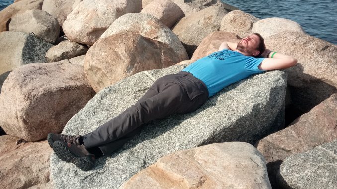 Vybalujeme věci a chystáme se k večeři. Kde jinde si vychutnat naše tradiční jídlo na těchto výpravách. Není nad plechovku Chilli con Carne. A pak nás potkala vtipná příhoda. Všichni si pochutnáváme, až na našeho kamaráda mudlu, který jak se dozvídáme, nejí jídlo z plechovek. Mimo jiné zjišťujeme, že nedodržel ani jednu z dobrých rad ohledně jídla, kterou jsme mu před výletem dali. Díky tomu mu vlastně už nezbylo skoro žádné jídlo a díky ránu ani voda. Odmítá i všechny námi nabízené potraviny a ještě se nám dostává poučení, co jsme s sebou měli vzít a nabídnout, aby to jedl. Nutno podotknout, že ani jednu z požadovaných věcí si s sebou nevzal. Kdo chce kam, pomozme mu tam. Nabízíme aspoň chleba a vodu, kterou naštěstí neodmítá. Lovíme nedaleké keše včetně mysterky AM #12 – Rumfærgen, kterou mám vyluštěnou z domova a finále je nedaleko. Byla to největší krabice, kterou jsme v Dánsku našli. Do nefalšovaného ammoboxu jsme tedy naházeli několik našich SQ a šli chystat spaní. Ráno musíme stávat před pátou a dojít do centra Kodaně.Spaní bylo parádní, až na teplotu, která v noci klesla pod 4 stupně. Trochu nečekaně málo na konec srpna. Ale naše těla zabalená v cyklospacácích to nakonec zvládla.