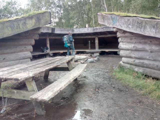 Nakonec z lesa vylézáme na začátku dlouhého náspu, který odděluje na jedné straně moře a na straně druhé ptačí rezervaci. Podél vrcholu je zbudována asfaltová cyklostezka a každých cca 800 metrů domeček pro poklidné sledování fauny na druhé straně náspu. A také je zde umístěna série tradičních keší, táhnoucích se až ke Kodani. Jelikož začíná mrholit a do toho foukat silný vítr, využíváme možnost schovat se v pozorovacích domečcích. Uvnitř jsou informační tabule s ptáky, které můžete vidět v okolí a hlavně turistická mapa okolí. Na ní nalézáme ikonku, která nás hodně zajímá. Jedná se o přístřešek pro přenocování, pár set metrů od hranice Kodaně. Tam musíme dneska dojít. Déšť naštěstí polevuje a tak bojujeme jenom s větrem a s cyklisty, kteří se po cestě prohánějí zběsilou rychlostí a nemíní ani na okamžik zpomalit. Procházka je to ale i tak krásná. Jednou se nám podaří na pobřeží najít utrženou bojku a tak dochází i na dánský fotbal. U ostrůvku Scradderholmen opouštíme pobřeží a míříme k přístřešku, který jsme viděli na mapě. Výhodou je, že v této části jsou keše na jakékoliv cestě, kterou se rozhodnete dát. Pomaličku se začíná šeřit a naše výprava doráží na místo, kde by měl stát přístřešek. To, co jsme na místě našli, nás ale úplně odrovnalo. Čekali jsme něco ve stylu pár prken stlučených k sobě. Ale tady byl masivní kruhový přístřešek s ohništěm uprostřed a nedalekým posezením. Prostě paráda.