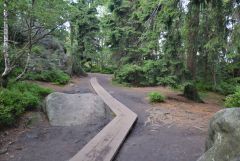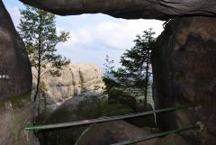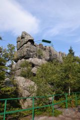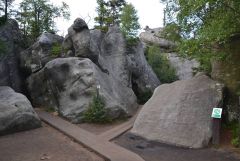 Od rozcestí nad vodopádem pak pokračujem ještě kousek po modré na další rozcestí, kde se vydáme po červené směrem na jihovýchod. Trasa zde vede po cyklotrase spíše lesy až na rozcestí na silnici s modrou, po které pokračujeme dál po silnici ke kešce Stroczy Zakret. Po zelené pak pokračujeme dál po kraji srázu až na rozcestí u Pielgrzymů, odkud si odskočíme na další keš u pěkných skalisek. Dále naše trasa vede kousek pro změnu po modré na další rozcestí u kešky Rock Mushroom II (neboli skalní hřiby II) a pak už budeme pokračovat krajinou plnou zdejších skalních hřibů kolem druhé kešky Rock Mushroom a hlavně kolem krásných skalních útvarů po žluté až do Batorowku, kde se nalézá nejen zdejší earthtka Skalne Grzyby, ale i tradička. Zde si také můžeme odpočinout u krásného odpočívadla, kde je upravené dokonce i kryté ohniště.