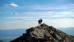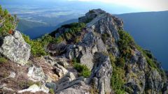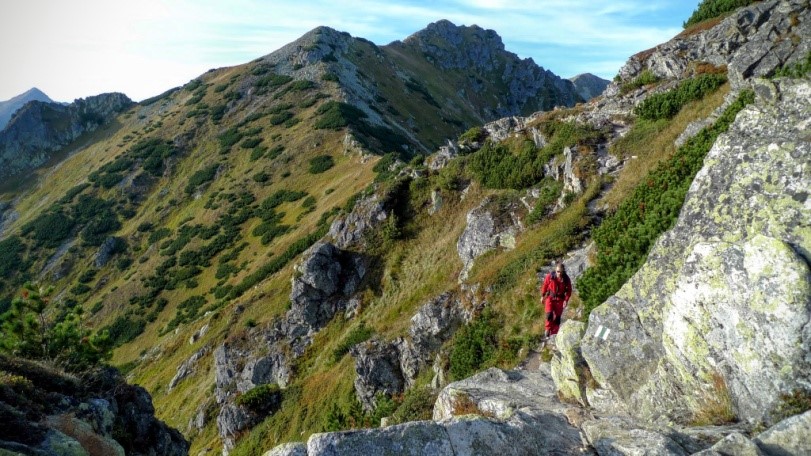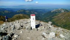 Posledné rozhliadnutie a pokochanie sa výhľadmi a putujeme ďalej po hrebeni, ktorým tu zároveň vedie aj slovensko-poľská hranica. Poľskí turisti sú tu teraz v prevahe a čoraz častejšie počujeme namiesto „Dobrý deň“ „Deň dobry“. Na Končistej oddychuje cela skupina turistov z Poľska, tak sa posadíme obďaleč na chvíľu aj my. Po ceste nazad k autu cez Otrhance nemáme už veľa kešiek, tak pridávame ďalšiu na Hrubom vrchu. Je tu významná križovatka turistických ciest, dá sa odtiaľto pokračovať západným smerom na Volovec a zisť do Roháčskej doliny a do civilizácie. No my to stáčame na juhovýchod na Jakubinú, slnko už máme za chrbtom, treba sa poponáhľať.