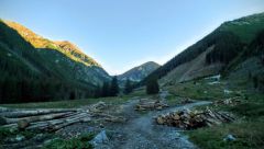Ďalšou keškou na ceste je Račkova dolina Tajch. Chvíľu sa tu motáme, ale nakoniec nachádzame. Máme dnes šťastie na počasie, ukazuje sa azúrovo modra obloha a vychádzajúce slnko zláti vrcholky okolitých hor.