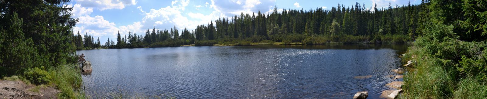 Byli jsme tu ubytování s párem českých (tedy, vlastně moravských) turistů. Pán měl Slovenské hory díky jejich blízkosti hodně prochozené, tak jsme u něj po večerech čerpali moudra kudy nejlépe vyrazit na hory. Ti tu byli jen vlakem, takže když říkali, že jedou třetí den stejným směrem, nabídli jsme, že je svezeme. Cestou po hlavní silnici, když jsme míjeli pěkné pleso, povídám Daně – „no, tady je taky keš“. A pán na to: „Já si hned říkal, že to není normální, aby člověk s takovouto GPSkou nebyl kačer.“ Má GPSMap 60 totiž ležela na čelním skle auta. A tak jsme se dozvěděli, že jsou oba s manželkou také kačeři! Bohužel jsme měli čas o geokešingu povídat jen krátce, chvíli cestou a během odlovu kešky Tri Studničky, kterou jsme společně odlovili. Kolega si totiž nestáhl kešky kolem „Dederonštráse“, ale pouze ty turisticky významnější někde v horách. Nakonec však byl rád, že se na kešku na Třech Studničkách podíval. Ale o tom až při popisu 3. dne.