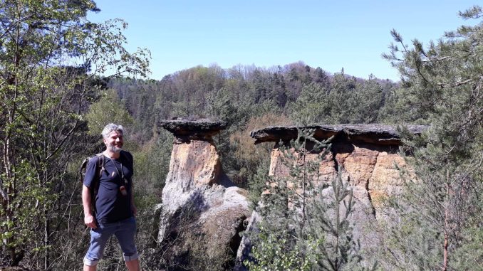 Průrva ve skále vypadá na první pohled nevinně. Pískovcové bloky od sebe oddělila trhlina, když roztáhneš ruce a nohy, můžeš se sunout šikmo vzhůru, jištěn jen výšlapky předchůdců do měkké horniny. Geobratr se mi před očima promění v chobotnici, stejně jako Řehoř Samsa v brouka, a než se naděju, stojí nahoře v polojeskyni, kde se podle všeho může vyskytovat keš. Sundávám batoh a raději vůbec nepřemýšlím, zaklesnu se do škvíry a zkouším jej následovat. Už mám více než půlku za sebou, když mi ztuhne žaludek. „Bojim“, pípnu zkroušeně. Už od chvíle, kdy se zdejší krabice ocitla v našich plánech, jsem živil starost, že tenhle bodík budu muset oželet. Čím je člověk blíž smrti sešlostí věkem, tím víc se holt chrání a strachuje, že. O pět minut později loguju…