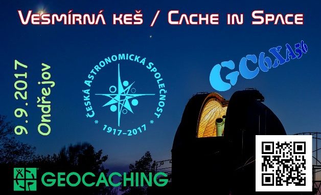 Závěrem si dovolím jednu takovou drobnou poznámku. Pokud se budete někdy v následujících měsících pohybovat v okolí Ondřejova, zkuste si odlovit úvodní kešku k sérii cas100geo a při té příležitosti se rozhlédněte po areálu observatoře. Prohlédnete si tak místo připraveného eventu a můžte si vyzkoušet nalézt část citátu z básnické sbírky Jana Nerudy – Písně kosmické.