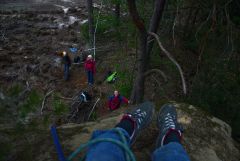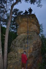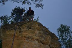 Mimoní jsme pak rovnou projeli rovnou k Rovinám pod Ralskem. Byli jsme totiž domluvení, že nás parta Sovího Doupěte vezme na odlov pár zdejších T5 keší. Lomy Ralska byly opravdu obtížné, takže jsme si pěkně zaslaňovali, zaběhali si s lany, abychom si nakonec všichni vylezli pro finálku. Po třech hodinách odlovu jedné multiny jsme si odlovili ještě jednu kešku a pak pokračovali do kempu v Borečku.