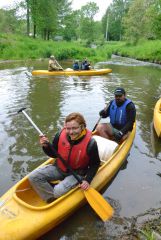 I přes ranní vstávání kolem osmé hodiny jsme na vodu vyráželi až kolem půl desáté. To už vytrvale poprchávalo. Přesto jsme na vodu vyrazili. V pláštěnkách a pořádně nabalení. Naštěstí nepršelo moc hustě, takže občas jsme mohli kapuci na chvíli i sundat, když zrovna přestalo trochu pršet… I tak to byla zajímavá zkušenost, co člověk vše vydrží a že i dnes jsme mohli zažít prima zážitky. I přes škaredé počasí na většině ostatních byly vidět spíše úsměvy.