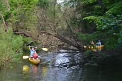 Ze začátku jsme jeli trochu pomaleji, protože jsme často stáli a čekali, než se uvolní zácpa u toho či kterého stromu. Později začala být cesta trochu technicky náročnější na pádlování, protože člověk musel stále někde zatáčet :-). Nástrahy byly občas i docela nečekané. Pomáhali jsme cestou i vylévat loď, která najela uprostřed na kládu. A během vylévání se zde málem udělaly asi další dvě lodě.