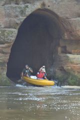 Ráno jsme za krásného počasí z kempu v Borečku vyrazili autem do Novin pod Ralskem. Tam už byly spousty kačerů natěšených na sjíždění České Amazonky, neboli řeky Ploučnice. Mezitím, co jsme čekali, než přijedou všichni ostatní, šli jsme prozkoumat Průrvu Ploučnice. První seznámení s Průrvou jsme absolvovali po svých a přímo ke kešce Nohy zebou, komáři štípou. Alespoň jsme mohli vidět, kudy za chvíli pojedeme. Keška je totiž umístěná v samotné Průrvě Ploučnice. Jedná se o kaňon, kterým protéká Ploučnice a vypadá to tu opravdu zajímavě.