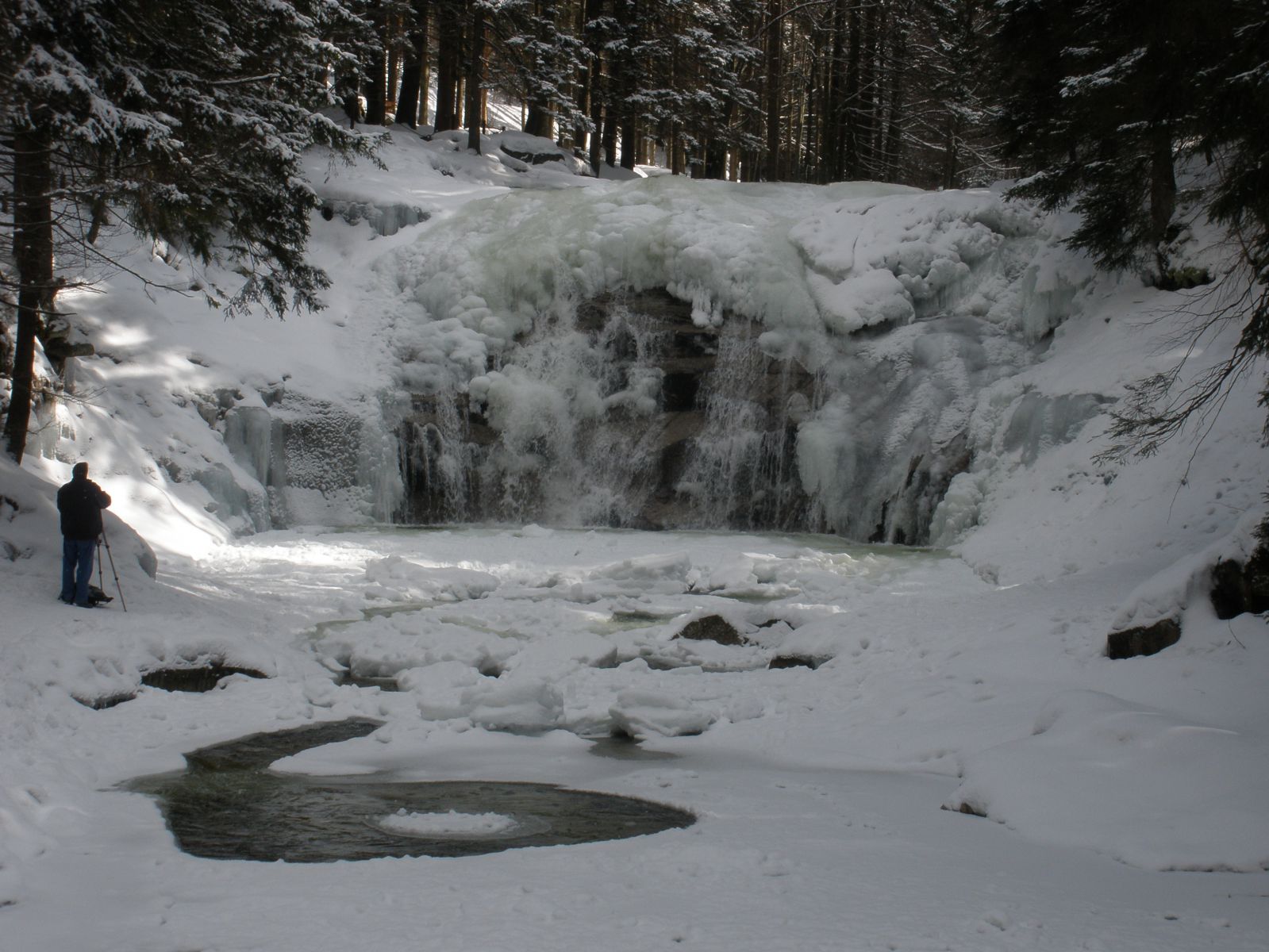 Na odlov jsme si vybrali krásný sluneční den, kdy všude okolo byl čerstvý prašan. Na lyže jsme vyráželi z centrálního parkoviště v Harrachově (bohužel placené 100 Kč / den). Odtud jsme vyrazili údolím Mumlavy rovnou k Mumlavskému vodopádu. Tady jsme si splnili zdejší earth keš Mumlavský vodopád. Když jsme tu byli, tak tu zrovna chyběla cedule s jednou odpovědí. Naštěstí jsem dohledal odpověď ve svém domácím fotoarchivu, kde jsem měl otázku vyfocenou :-).