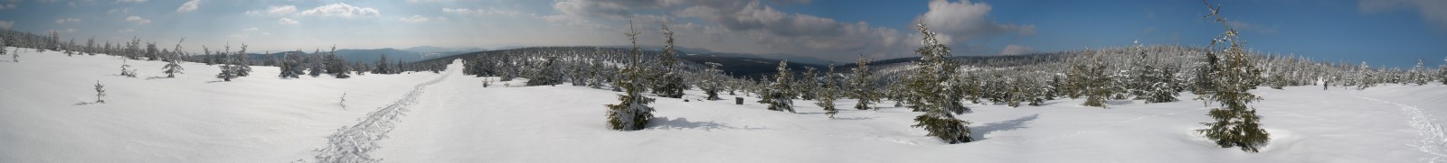 Vzhledem k fotonápovědám, množství sněhu a DNF logům za sněhu jsme nakonec vynechali kešky, které byli blízko cesty, ale hodně obtížně lovitelné v zimě a pokračovali jsme podél Huťské strouhy vzhůru po modré turistické značce. Přestože byla značená jako lyžařská, na lyžích se tu moc jet nedalo, takže jsme raději šli pěšky. Naštěstí se dalo jít celkem v pohodě a tak jsme dostoupali až ke keši Křižovatka 870 m.n.m., kde jsme si zjistili nejen indície stage multiny K pramenům kamenice, ale zkusili i odlovit i tuto keš. Opět jako u dalších zdejších keší jsme nyní v zimě i přes dlouhé hledání neuspěli. Dál jsme pokračovali vzhůru potokem až k další stage a na krásnou lyžařskou trasu – tzv. Terex. Zde u stage 5 jsme indície spíše odhadly. Dnes už naštěstí autor změnil indície k výpočtu, takže jsou jednoznačnější 🙂 Další cesta vedla po lyžařské cestě Terex. Tuhle lyžařskou trasu plnou krásných výhledů vřele doporučuji. Plánujeme si ji jednou projet celou, až od Harrachovské celnice. Po ní už jsme dojeli až ke stage 6, kde jsme po rychlém zjištění indície jsme dopočítali souřadnice finálky a vyrazili jsme pro finálku. Tady už nás trasa vedla mimo lyžařskou trasu. Naštěstí jsme měli dobrý sníh, vespod pevný a nahoře krásný prašan, takže i přestože jsme si procházeli vlastní stopu, šlo se nám dobře. Mírným stoupáním jsme došli až skoro k prameni Kamenice, kde nás čekala cedule Národní park I. pásmo a nedaleko už také finálka našeho dnešního hlavního cíle – kešky K Pramenům kamenice. Finálku jsme chvíli hledali, protože i přes atribut odlovitelné v zimě byla maličko pod sněhem. Ovšem to bylo tím, že umístění kešky bylo spadlé, dnes už autor i to podle logů opravil. Od finálky jsou nádherné výhledy na okolní krajinu Krkonoš a také na Jizerské hory. Okolí finálky, kam se člověk normálně nepodívá, nás úplně nadchlo a vřele doporučujeme její návštěvu!