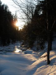 Na odlov jsme si vybrali krásný sluneční den, kdy všude okolo byl čerstvý prašan. Na lyže jsme vyráželi z centrálního parkoviště v Harrachově (bohužel placené 100 Kč / den). Odtud jsme vyrazili údolím Mumlavy rovnou k Mumlavskému vodopádu. Tady jsme si splnili zdejší earth keš Mumlavský vodopád. Když jsme tu byli, tak tu zrovna chyběla cedule s jednou odpovědí. Naštěstí jsem dohledal odpověď ve svém domácím fotoarchivu, kde jsem měl otázku vyfocenou :-).